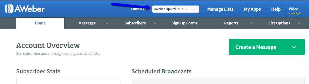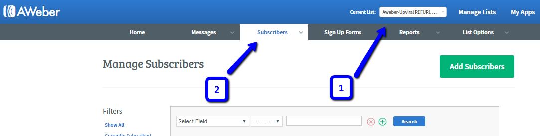 Go to Aweber and open the list where you added the REFURL and go to “Subscribers”.