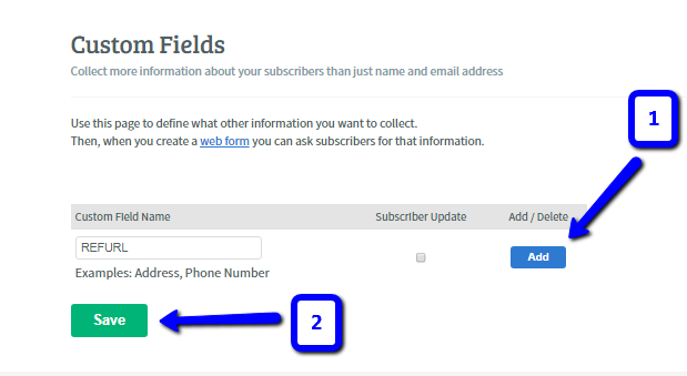 You will need to add a field on your autoresponder for the referral link field which we will call REFURL in this article. (Ex. if you have a "Phone Number" field on your autoresponder and you're also collecting leads' phone numbers on your UpViral campaign, it's important that you have a "Phone Number" field first on your autoresponder so that you can make sure the phone numbers you get from UpViral are sent to your autoresponder's Phone Number field.)