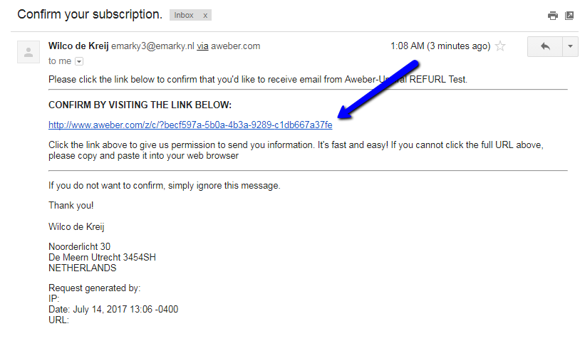 Getting the Referral Link with Aweber