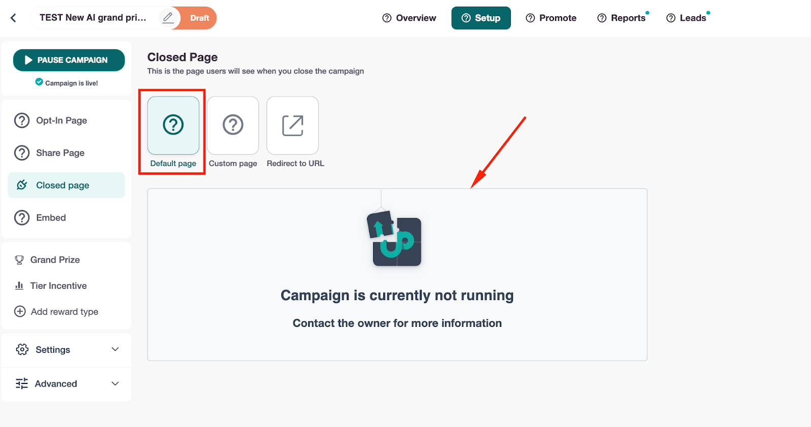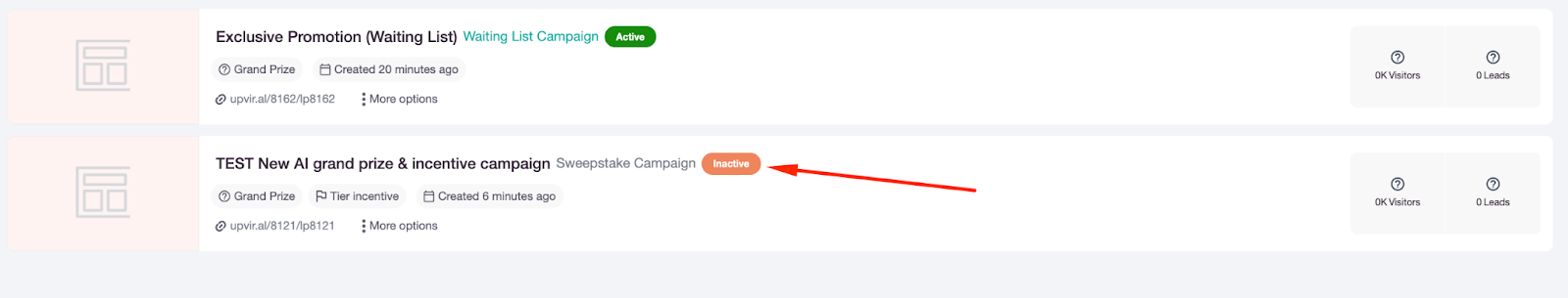 When you pause any campaign, it will display an inactive status on your UpViral dashboard.