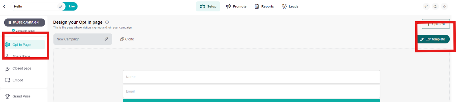 1 - Open your campaign and go to Opt-In Page > Edit page