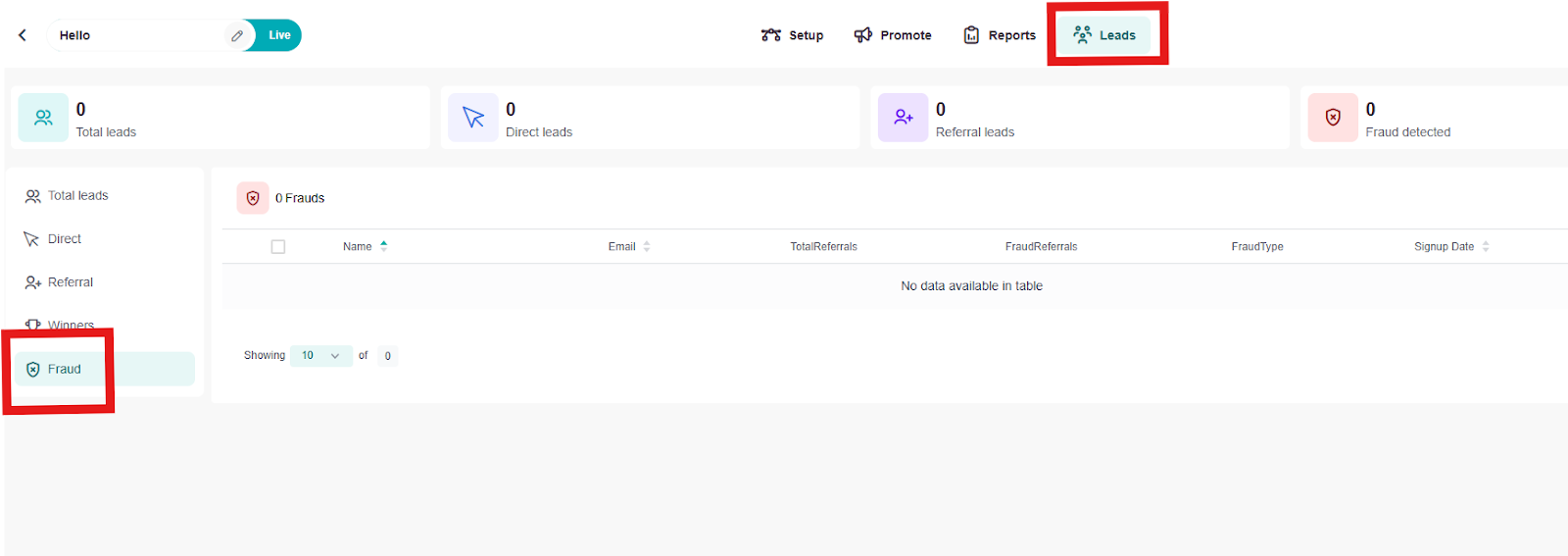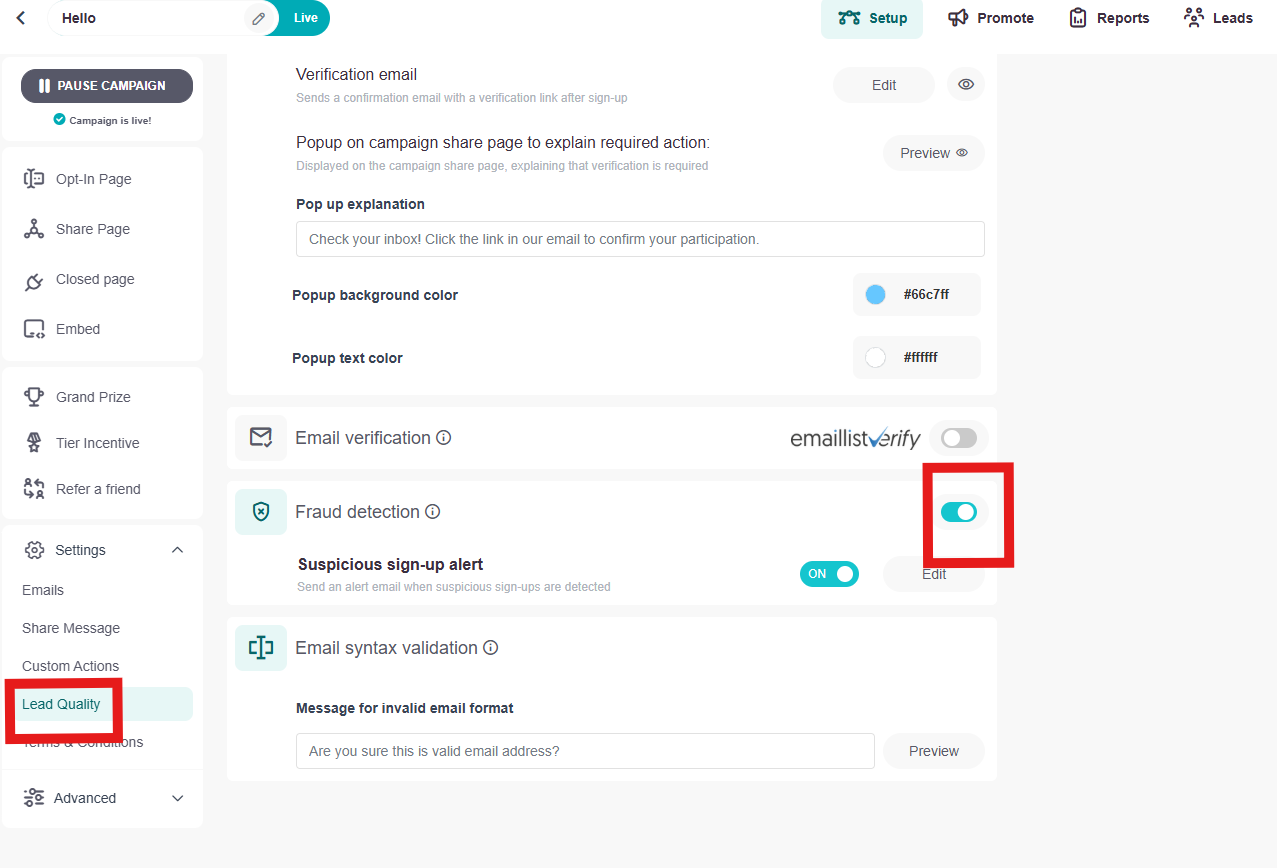 When turned on, UpViral automatically deactivates leads that it considers fraudulent.