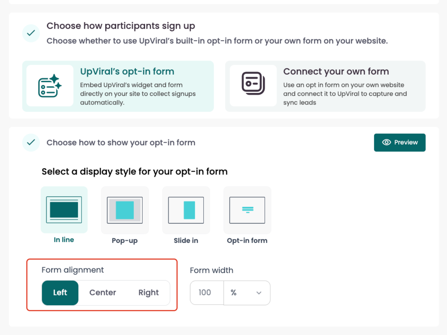 Choose UpViral opt-in form to use the built-in UpViral widget.