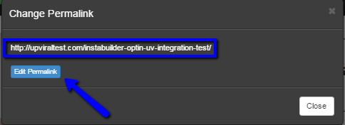 Click Edit Permalink. In this case, we will be naming it as upviraltest.com/instabuilder-optin-uv-integration-test/ (see screenshot below):
