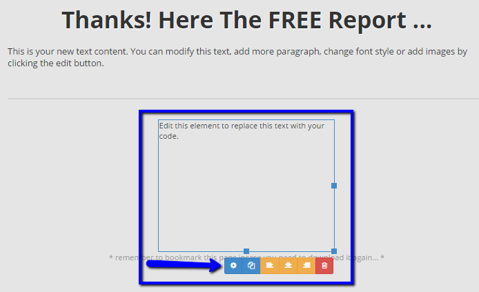 Click the box that says Edit this element to replace this text with your code. then click the gear to open up the Code Settings.