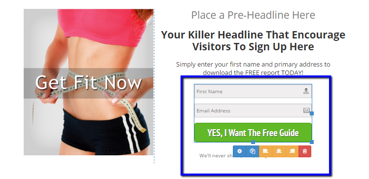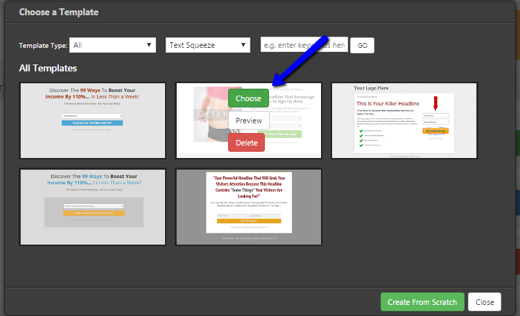Choose a template. Select Text Squeeze to filter opt-in templates that enables someone to enter his name and email.