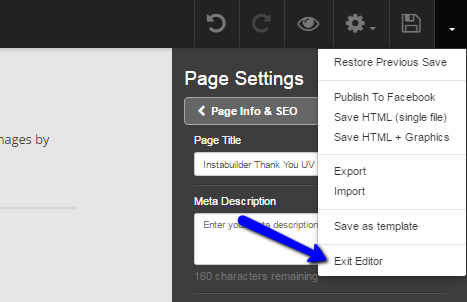 Exit out from the page editor by clicking the arrow pointing downwards and clicking Exit Editor.