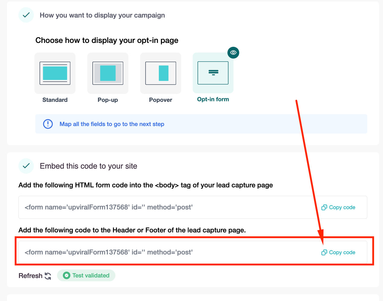 To display your UpViral campaign, add the following code snippets to your lead capture page: