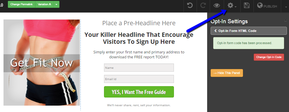 Same page – The share widget appears on the same page as your opt-in form (page refreshes).