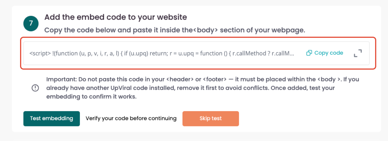 Avoid embedding multiple UpViral codes on the same page.