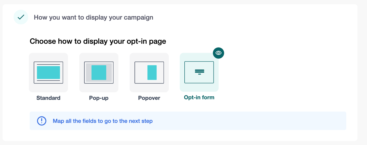 Under How you want to display your campaign, select Opt-in Form.