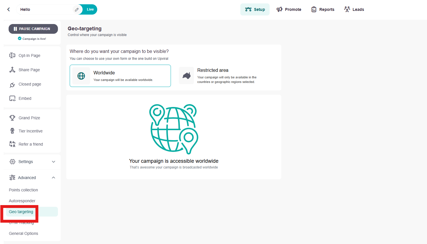 If you want to target specific countries for your campaign and exclude all others, you can use the geotargeting feature.