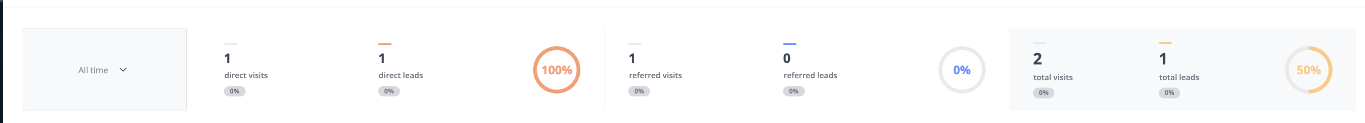 In this section, you can track the day-by-day progress of your visitors and leads, segmented by direct or referral traffic sources. The conversion rate for each day is also displayed. To explore more detailed information, simply click on the + icon located at the top right of the graph.