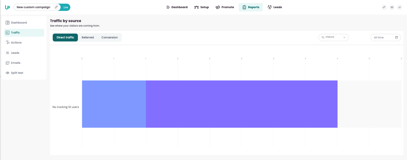 No Tracking ID Users: Visitors who signed up or accessed your campaign directly (not referred from platforms like Facebook or Twitter).