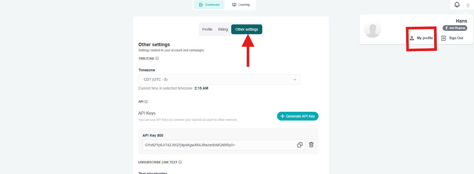 Step 1. Go to your My Profile and click Other Settings: