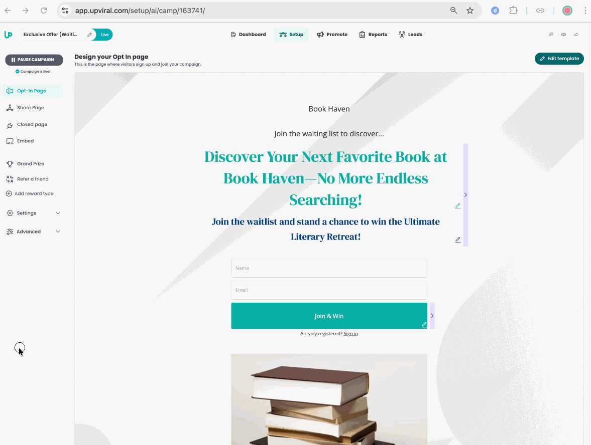 If you want to redirect all participants to the Share Page when they visit your campaign to check their progress or share your campaign again, please follow the steps below: