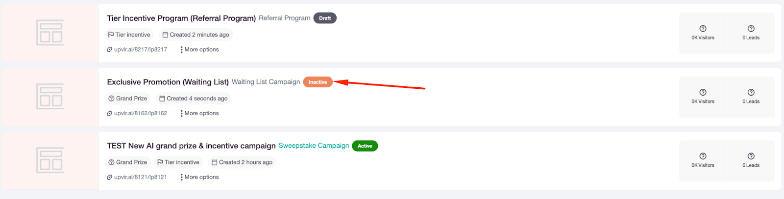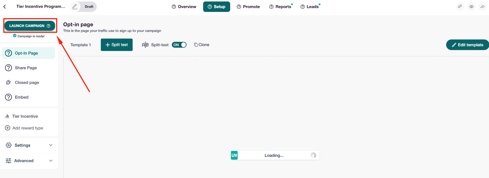 Step 2. Check if the campaign is “Completed” which means that you have both Opt-in page and Share page created. Only Completed campaigns will be live and accessible via the campaign URL. Make sure you’ve gone through the entire setup process in case the campaign is still not completed.