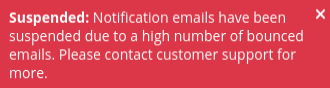 “Suspended: Notification emails have been suspended due to a high number of bounced emails. Please contact Customer Support for more.”