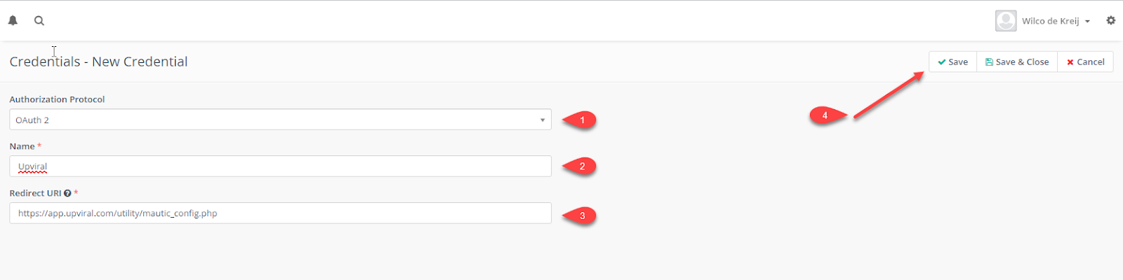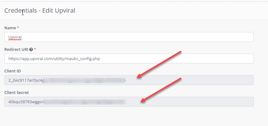 The “Redirect URL” will be https://app.upviral.com/utility/mautic_config.php