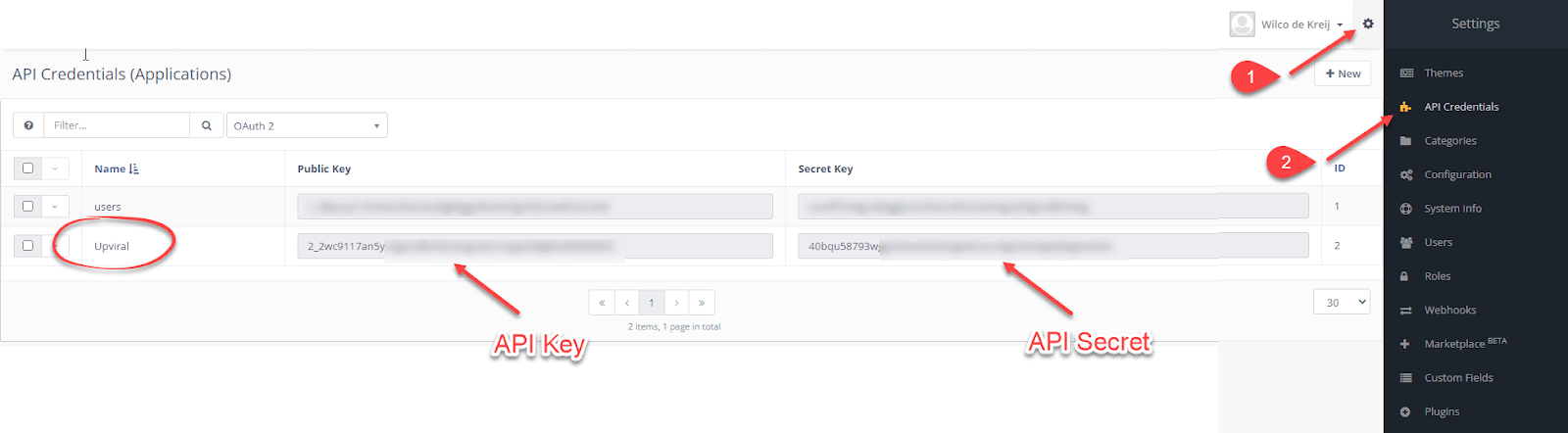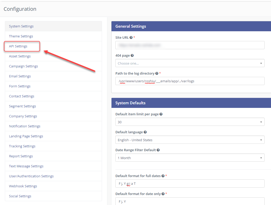 First, create a new API on Mautic which you will use for this integration. Login to your Mautic account and click on the gear icon located in the upper right-hand corner, beside your profile.