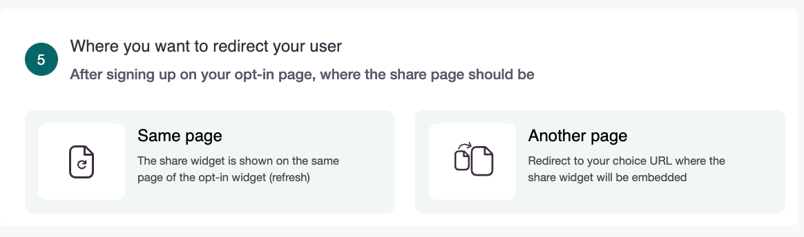 Same page – The share widget appears on the same page as your opt-in form (page refreshes).