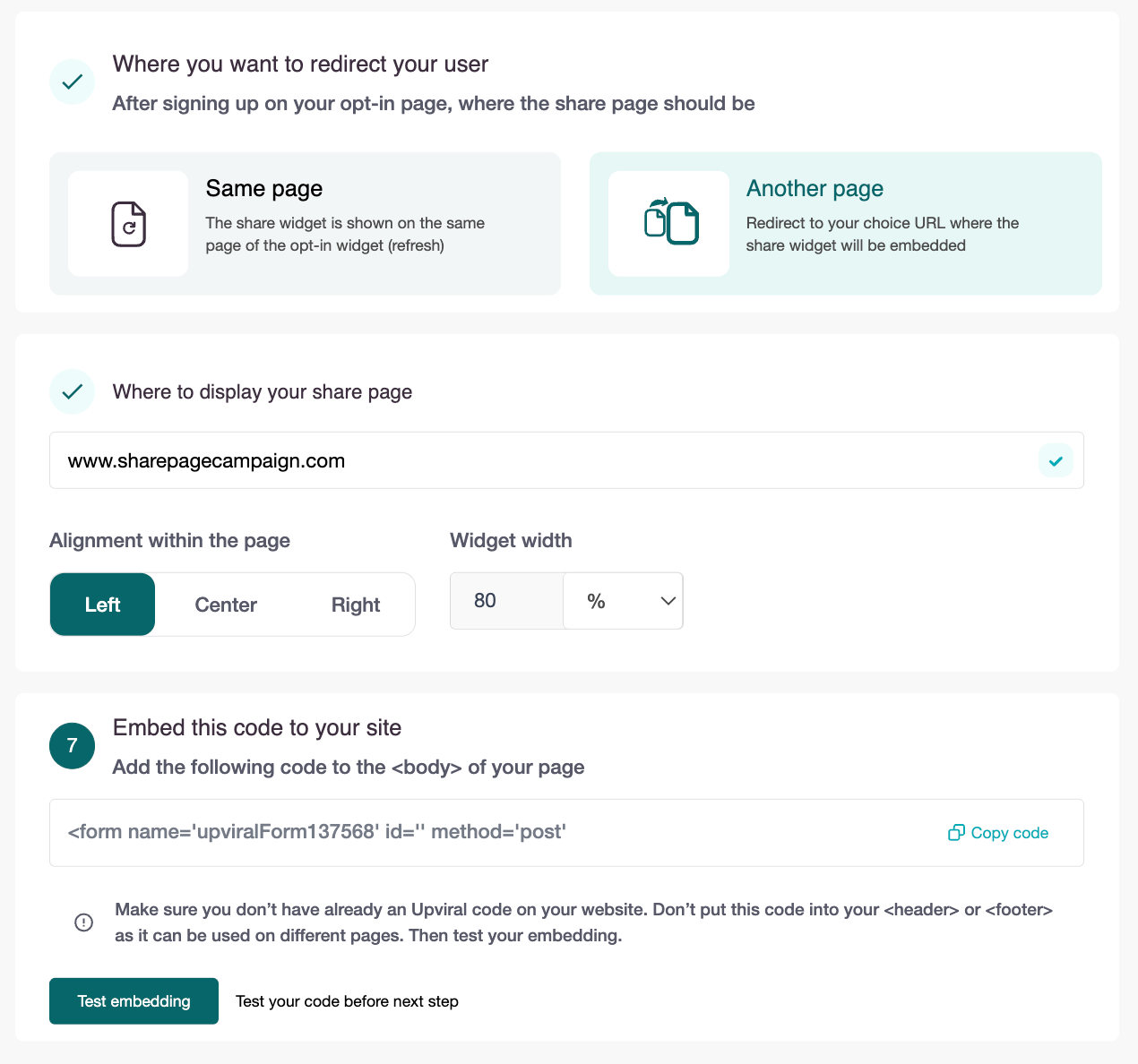 The share widget will be displayed on the same page as the opt-in widget (after a page refresh). Proceed to Step 6.