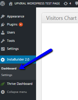Login to your WordPress Site Dashboard and click InstaBuilder.