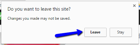 If promoted to a browser window to leave the site, just hit the option that allows you to leave.