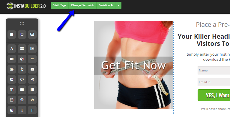 Click Edit Permalink. In this case, we will be naming it as upviraltest.com/instabuilder-optin-uv-integration-test/ (see screenshot below):