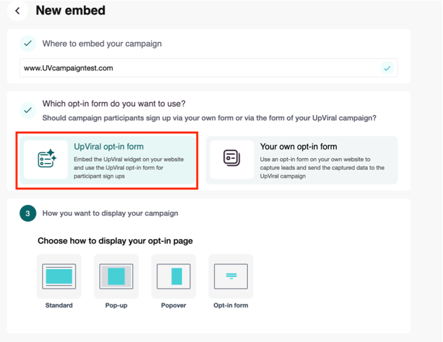 Choose UpViral opt-in form to use the built-in UpViral widget.