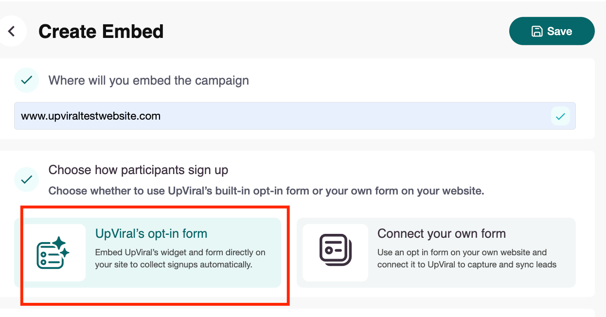 Choose UpViral opt-in form to use the built-in UpViral widget.