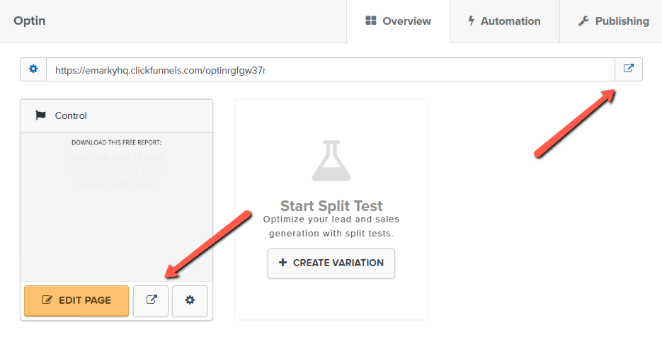 4. Click on the Edit Page button of your funnel page to access the Page Editor.