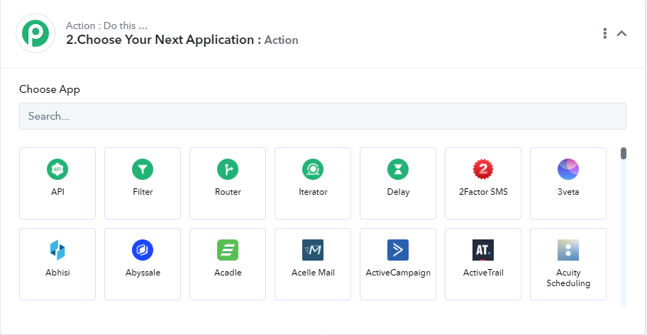 Next, choose the third-party platform you want to integrate with Upviral using Pabbly. In the next step, select the platform you want to use and follow the steps to complete the setup.