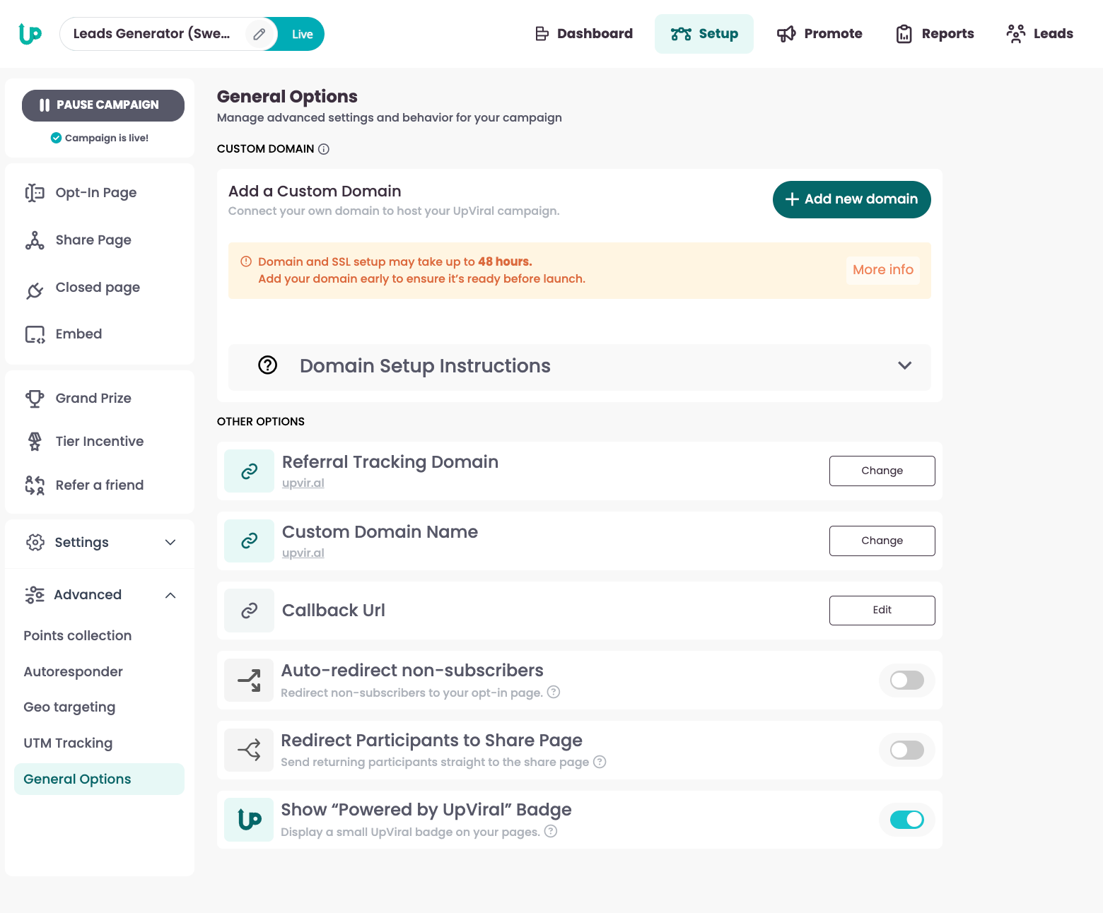 Login to your Upviral account. Create a campaign or go inside your existing campaign.